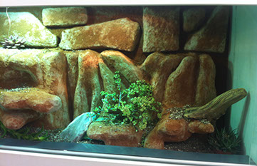 Restauriertes Terrarium mit selbst gestalteter Rückwand